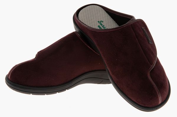 Комфортная стильная модель для дома. Съемная мягкая анатомическая стелька с покрытием из микрофибры обеспечивает улучшенную амортизацию при ходьбе, обладает гигроскопичностью и предотвращает скольжение  стопы. Широкая липучка обеспечивает большое раскрытие, позволяя легко надеть обувь на любую ногу и отрегулировать модель по подъему и полноте. Благодаря мягкой растяжимой подкладке и верху обувь отлично адаптируется к увеличенному подъему и деформированным  пальцам  ног, устраняя их болезненное натирание при длительном ношении.