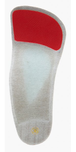 Пролонгированный и увеличенный поперечный свод специальной формы оптимально поддерживает и разгружает поперечный свод стопы. Смягчающая вставка из вспененного латекса под головки плюсневых костей снижает увеличенную нагрузку на область плюсны.