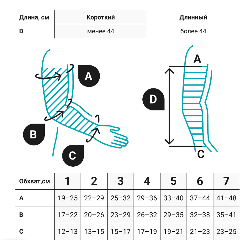 - Рукав может использоваться совместно с компрессионной перчаткой