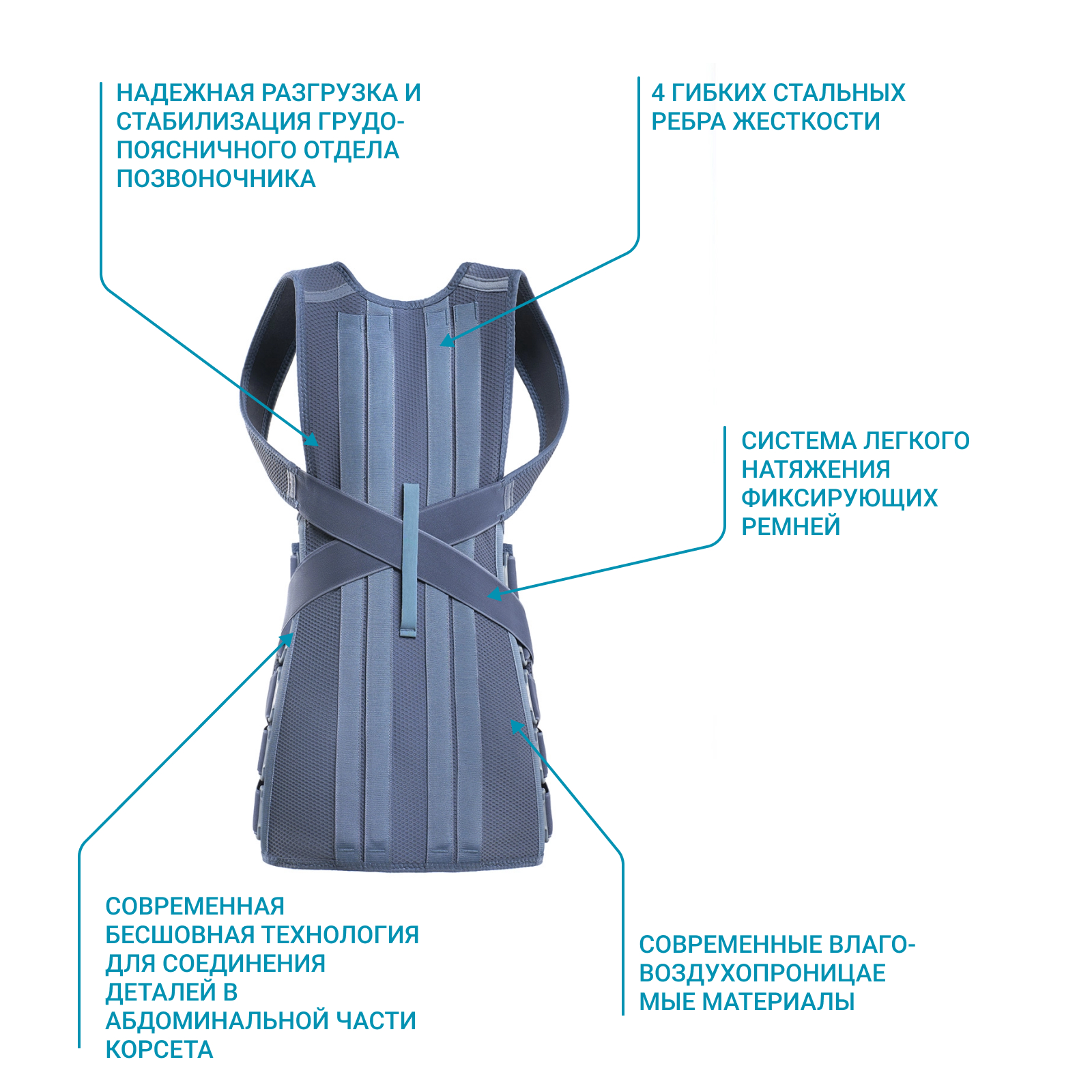 Надежная разгрузка и стабилизация грудо-поясничного отдела позвоночника.