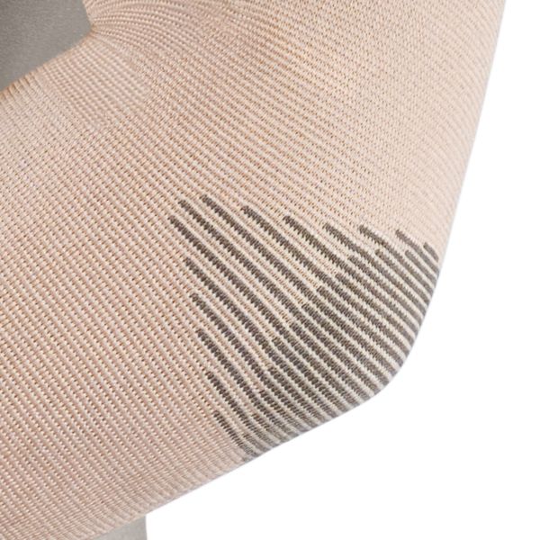 Эластичный бандаж на локтевой сустав с разреженной вязкой над локтем.