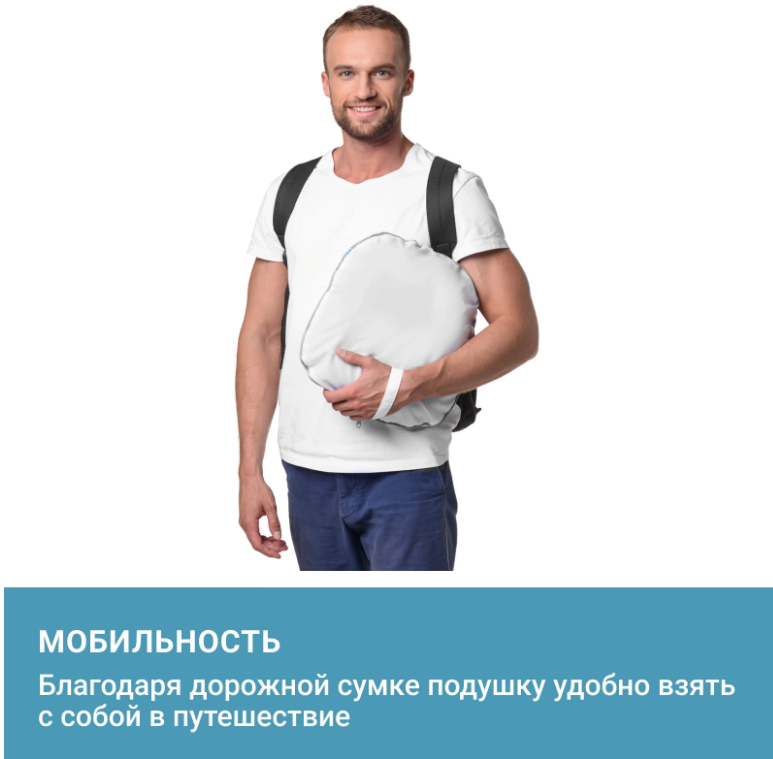 • Обеспечивает комфортную поддержку и физиологически правильное положение головы и шеи;