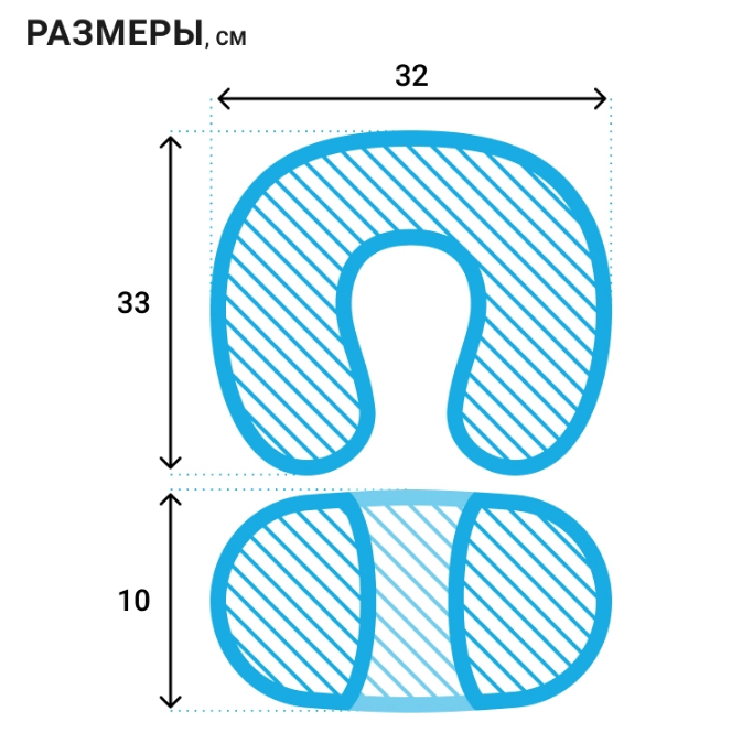 Размер: 33х32х10 см. Её основа из пенополиуретана с эффектом памяти позволит Вам комфортно расположиться в кресле и надёжно зафиксировать шейный отдел позвоночника, обеспечив его разгрузку.