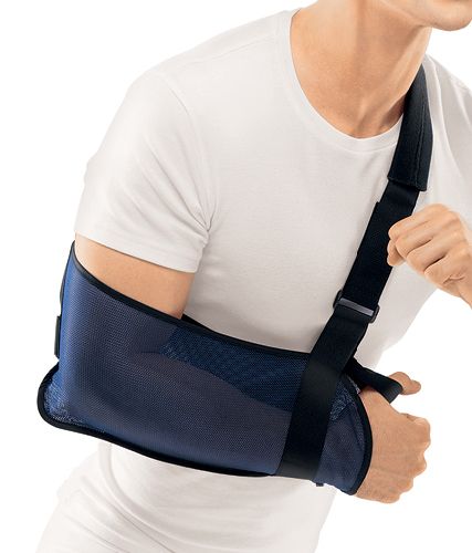 Бандаж на плечевой сустав (косыночный для поддержки верхней конечности) широко используется как самостоятельный способ иммобилизации, так и в сочетании с другими ортезами на суставы верхней конечности или традиционными гипсовыми повязками.