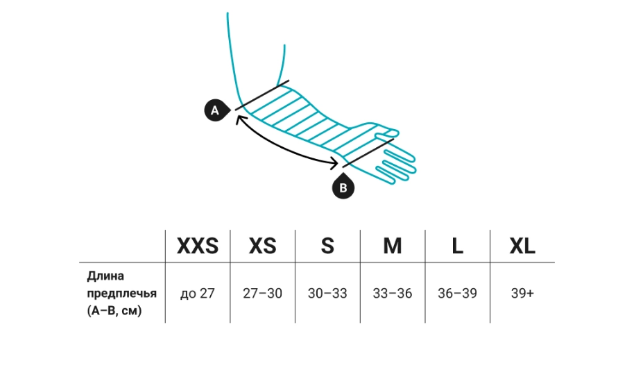 * Размер XXS рекомендуется пациентам с длиной предплечья до 27 см (при нормостеническом телосложении – дети до 7 лет).