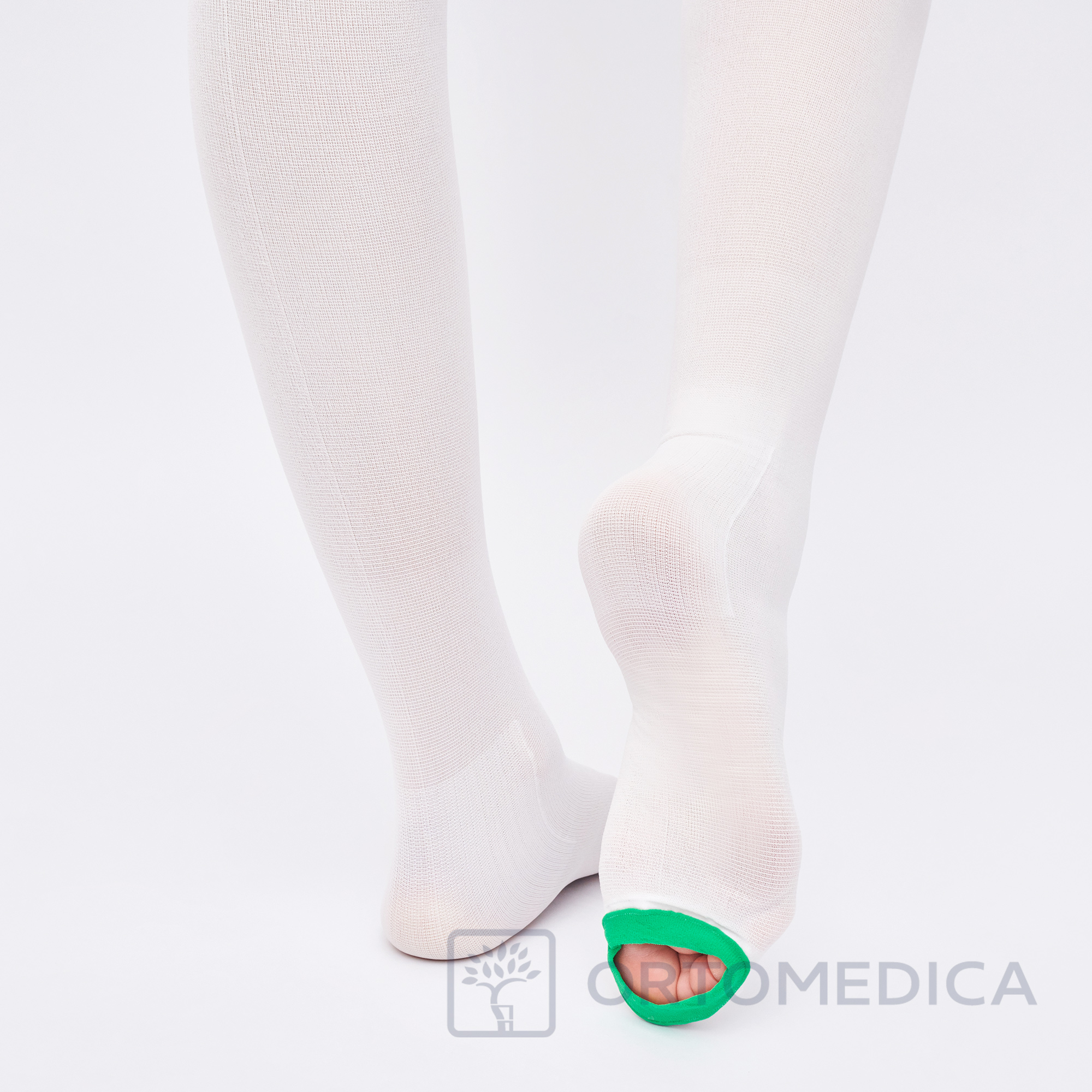 Ревизионное отверстие на стопе позволяет контролировать кожные покровы и осуществлять гигиенические процедуры. Закрытая пятка помогает правильно расположить чулок на ноге.