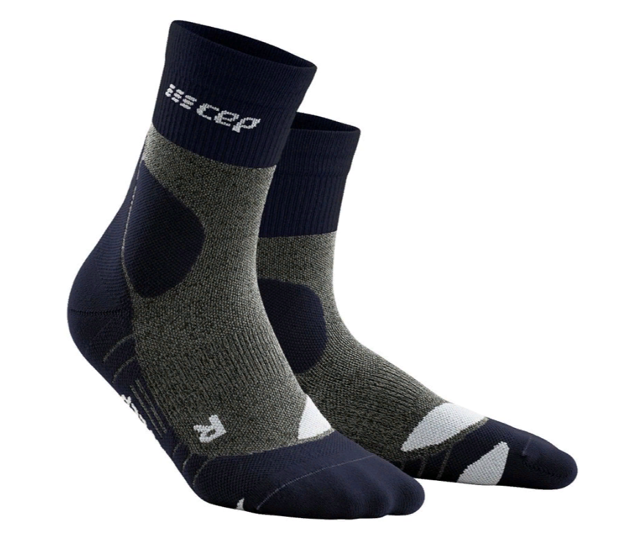 Компрессионные носки CEP с шерстью мериноса, сохраняющие оптимальный температурный баланс кожи и поддерживающие здоровье вен при отдыхе на природе.